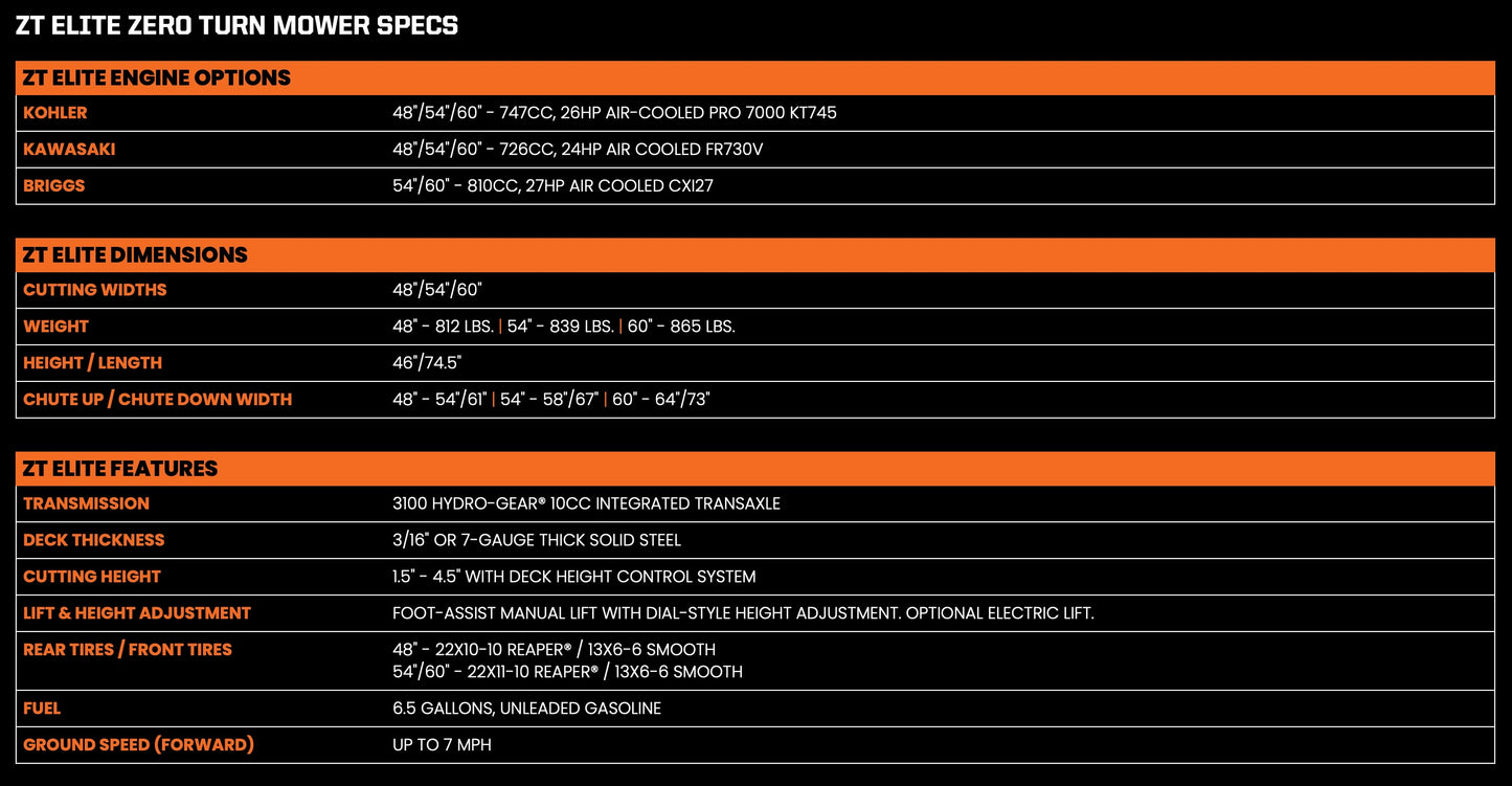 - ZT Elite w/ Kohler KT745 motor + 54" deck - $6,799