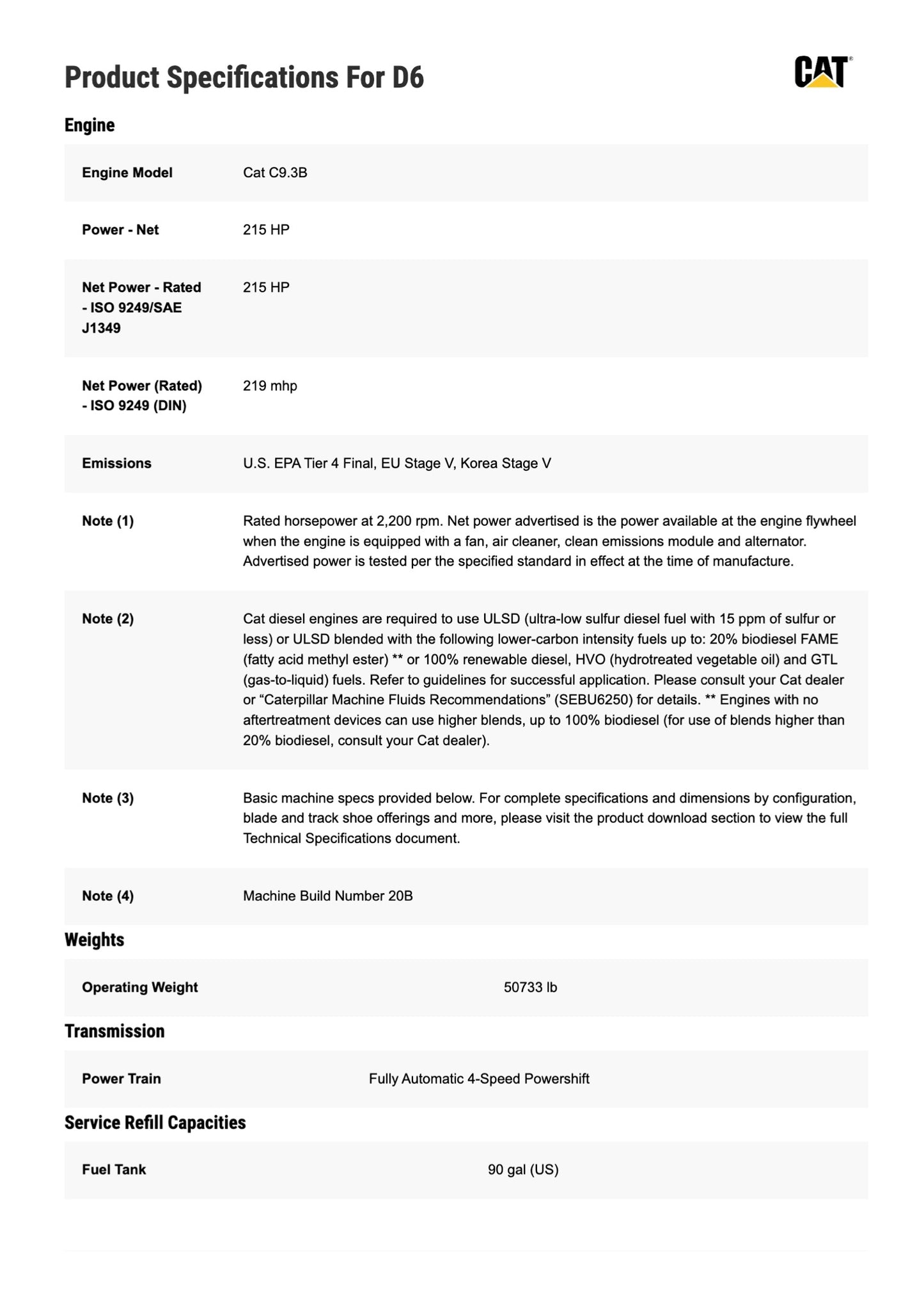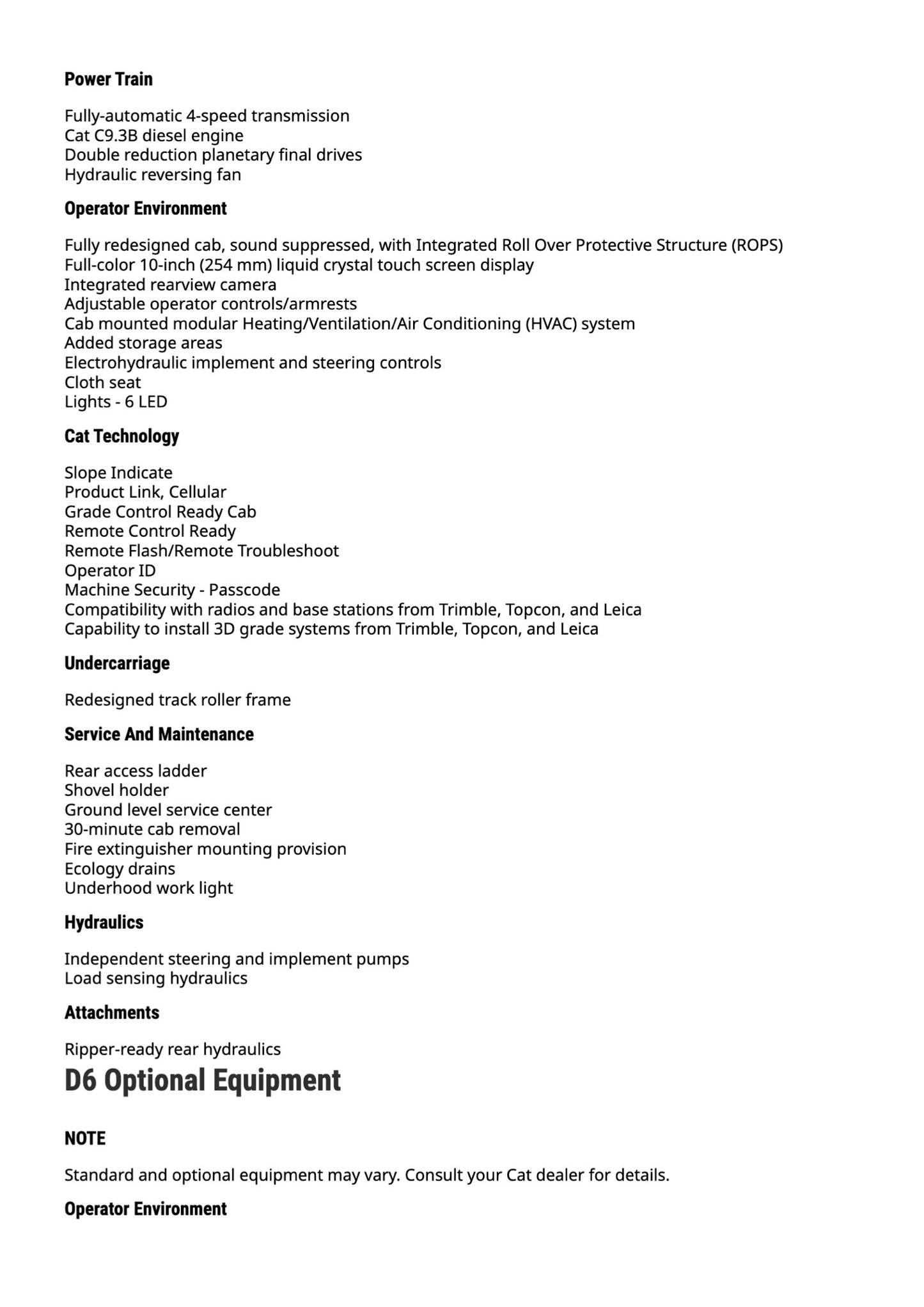 The latest in the line of CAT D6N dozers combines well-known versatility with a range of technology features to give you more job site productivity than ever before. A new transmission with lock-up clutch torque converter delivers ease of operation, increased net power, plus a 10-15 percent improvement in fuel efficiency. The D6N has the weight and horsepower you want for dozing applications and the balance and stability you need for finish grading – all in one easy-to-transport machine.